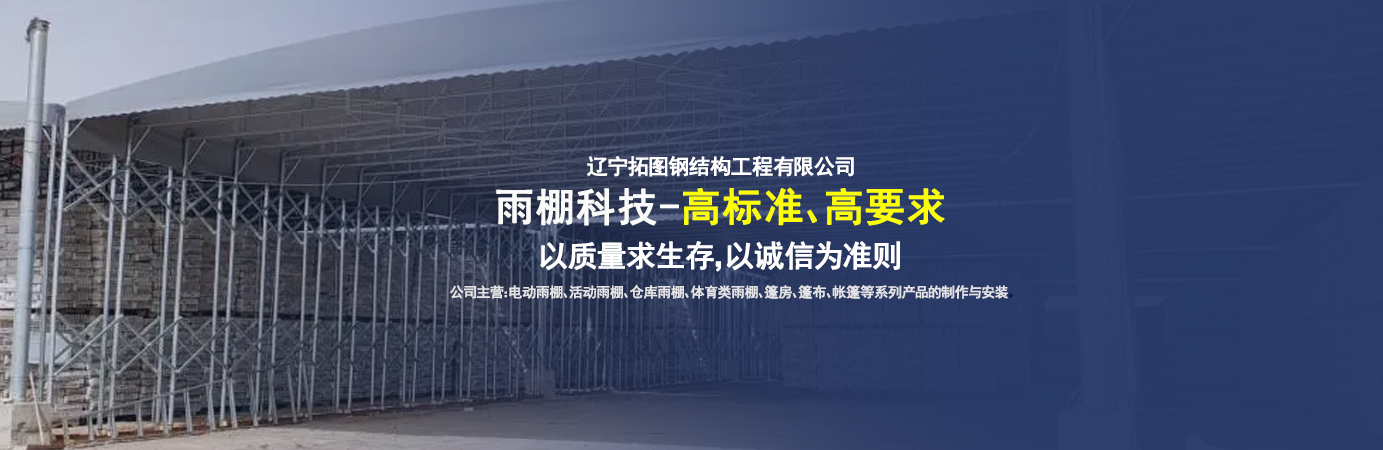 遼寧拓圖鋼結(jié)構(gòu)工程有限公司是一家專業(yè)從事推拉篷設(shè)計(jì)、制作、安裝、使用、維修的綜合性公司。公司主營:電動(dòng)雨棚、活動(dòng)雨棚、倉庫雨棚、體育類雨棚、篷房、篷布、帳篷等系列產(chǎn)品的制作與安裝?! ?nbsp; 遼寧拓圖鋼結(jié)構(gòu)工程有限公司堅(jiān)持以市場為導(dǎo)向,以科技創(chuàng)新為動(dòng)力,以質(zhì)量求生存,以誠信為準(zhǔn)則,倡導(dǎo)求實(shí)、進(jìn)取、創(chuàng)新的企業(yè)精神?!翱茖W(xué)的管理、嚴(yán)謹(jǐn)?shù)脑O(shè)計(jì)、 的制作安裝、嚴(yán)格的質(zhì)量檢測(cè)、良好的后期服務(wù)成就企業(yè)的信譽(yù),為您提供優(yōu)質(zhì)服務(wù)?! ?nbsp; 遼寧拓圖鋼結(jié)構(gòu)工程有限公司傾力于開發(fā)應(yīng)用三維空間結(jié)構(gòu)與新材料的結(jié)合,將廣告藝術(shù)視覺表現(xiàn)形式與張力膜材科學(xué)的結(jié)合,推出多彩推拉蓬,依靠先進(jìn)的科學(xué)技術(shù),將推拉蓬建筑表現(xiàn)形式無限延伸,立志走在建筑科學(xué)的前沿,引導(dǎo)建筑時(shí)尚潮流,我們的目標(biāo)是使推拉蓬建筑在中國發(fā)展壯大?! ?nbsp; 遼寧拓圖鋼結(jié)構(gòu)工程有限公司憑著極強(qiáng)的事業(yè)熱情和豐富的專業(yè)經(jīng)驗(yàn)以“勤勉進(jìn)取、銳意創(chuàng)新、至誠至信”的精神使公司得到迅速健康發(fā)展,業(yè)務(wù)范圍遍及全國??茖W(xué)的管理、嚴(yán)謹(jǐn)?shù)脑O(shè)計(jì)、高標(biāo)準(zhǔn)的制作安裝流程,嚴(yán)格把控產(chǎn)品質(zhì)量,熱誠的售后服務(wù)是企業(yè)競爭力的源泉。 遼寧拓圖鋼結(jié)構(gòu)工程有限公司人愿以最誠摯的態(tài)度,歡迎廣大客戶的蒞臨與溝通!愿為市場提供優(yōu)...